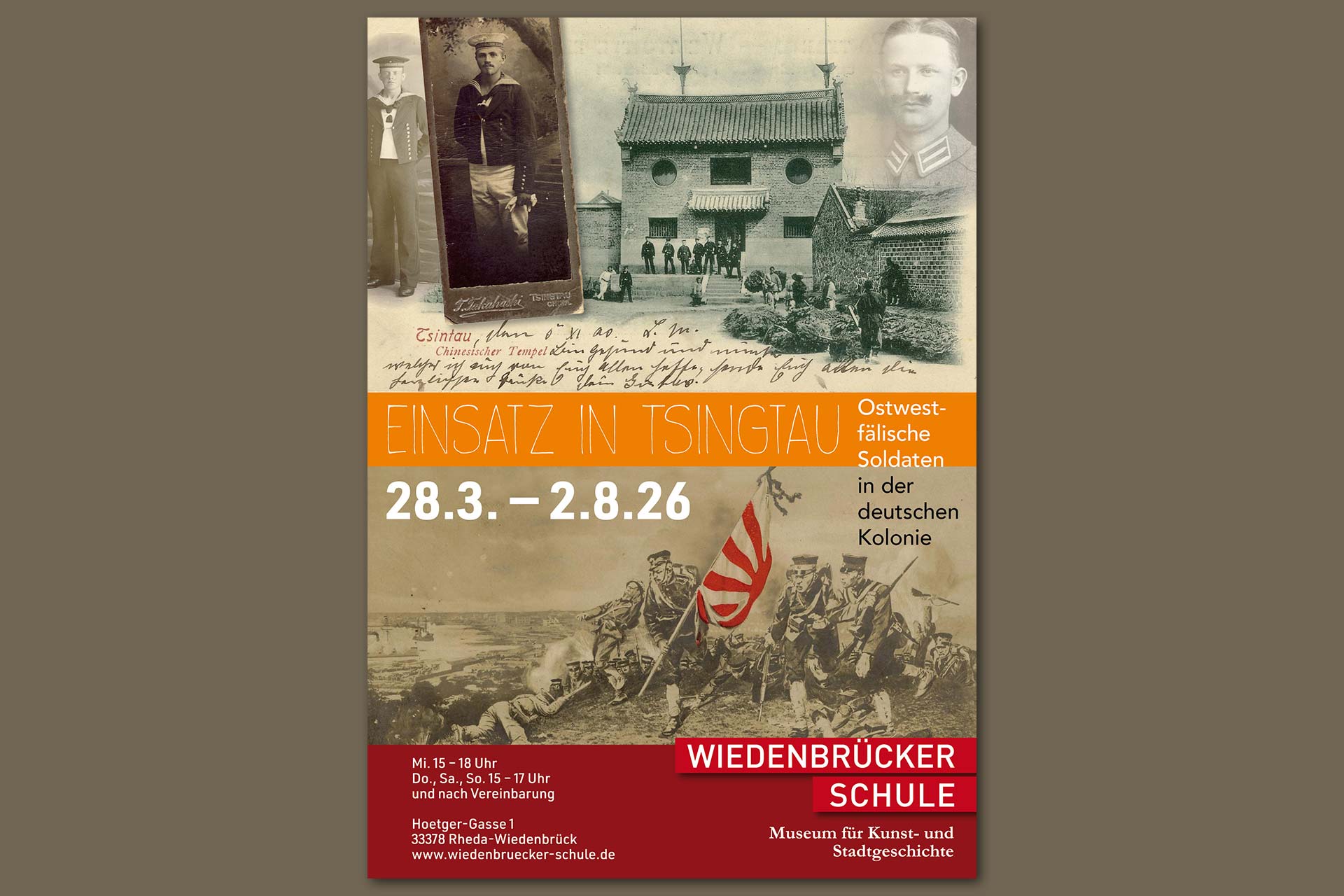 Das Museum Wiedenbrücker Schule zeigt vom 28.3.26 bis 2.8.26 die Ausstellung »Einsatz in Tsingtau – Ostwestfälische Soldaten in der deutschen Kolonie«.